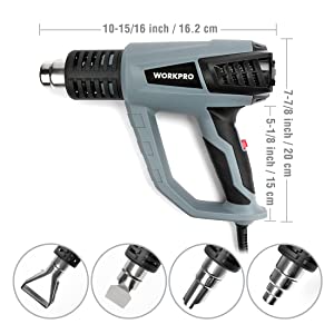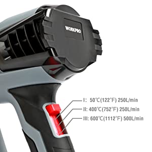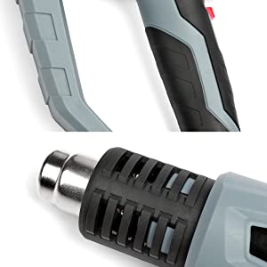 La pistola termica professionale e durevole ha una regolazione di temperature a 3 livelli diversi, che è adatta per la maggior parte delle applicazioni di riscaldamento, rimozione della vernice, ritiro del PVC, rimozione dei bulloni arrugginiti, ammorbidimento del fessura o piegatura della plastica, nonché asciugatura e scongelamento.